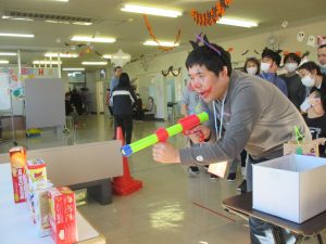 輪投げや射的などの楽しいゲーム。思い思いの仮装に笑顔がいっぱい🤣